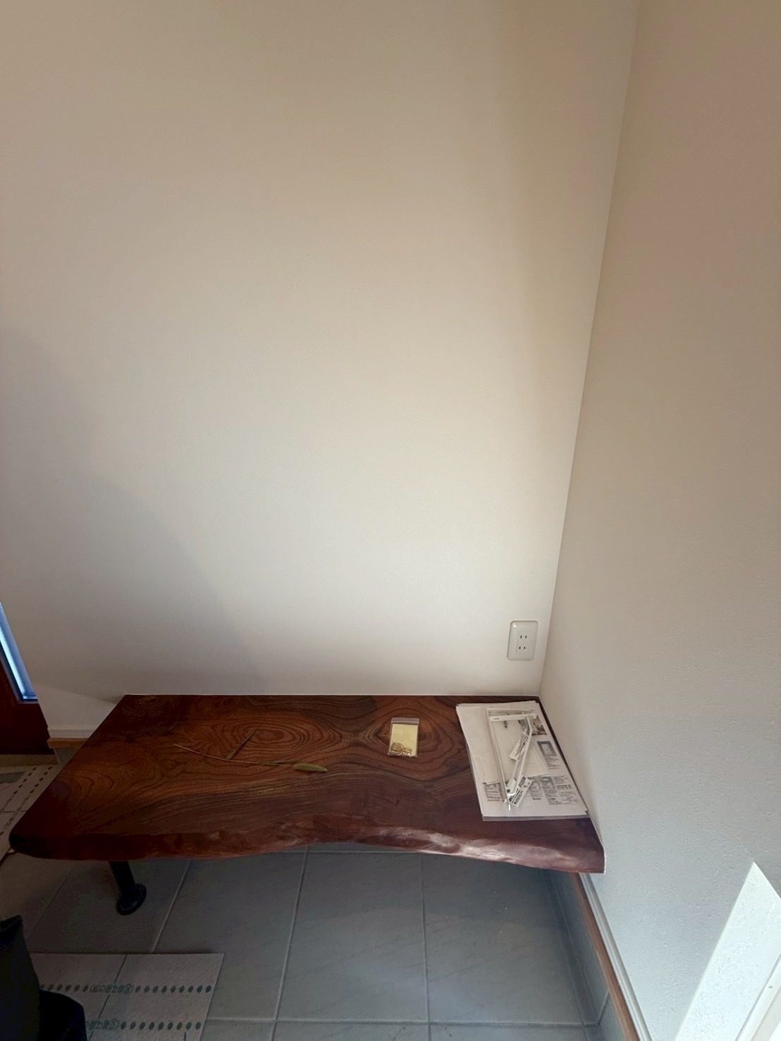 玄関先には、書類記入や荷物の仮置きにも便利な