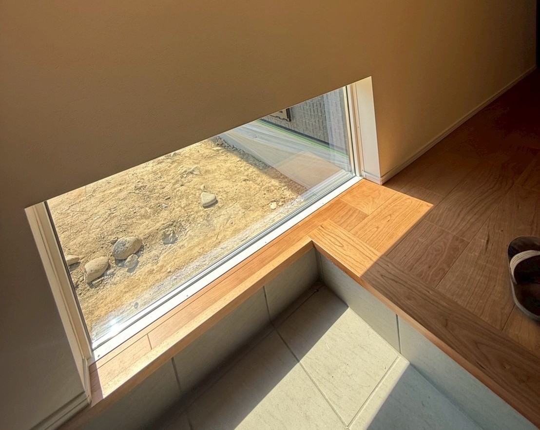 低い位置に設けた“地窓”からやわらかな光が差し込み、